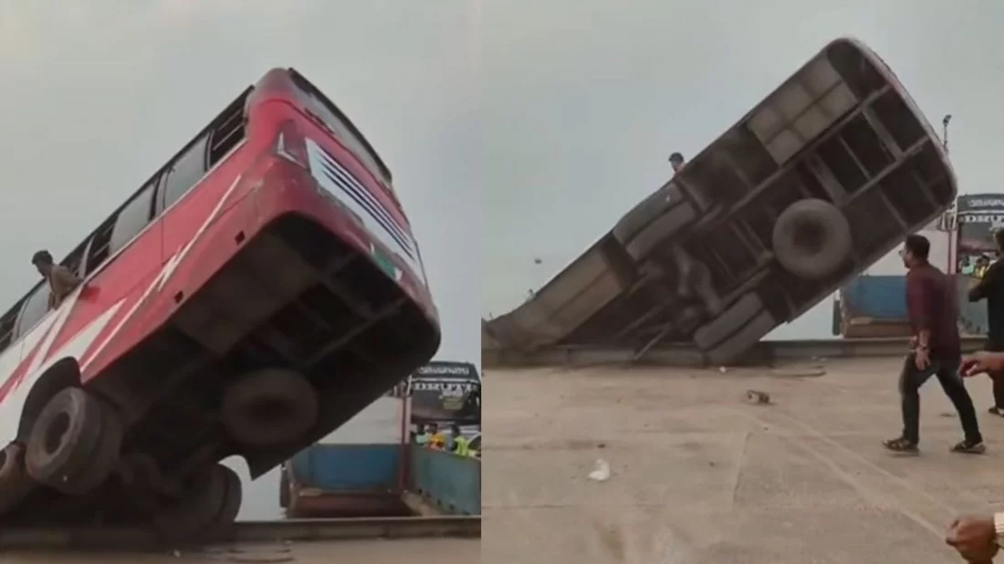 ফেরিতে ওঠার সময় যাত্রীবাহী বাস উল্টে পদ্মা নদীতে, দুই যাত্রীর লাশ উদ্ধার