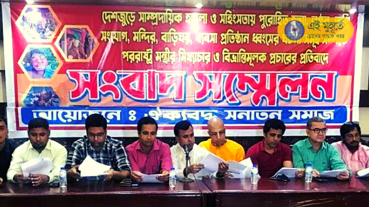 শনিবার দুপুরে চট্টগ্রাম প্রেসক্লাবে ‘ঐক্যবদ্ধ সনাতন সমাজ’ এর পক্ষ থেকে সাংবাদিক সম্মেলনে সংগঠনের নেতা কাঞ্চন আচার্য বলেন, ‘দেশের বিভিন্ন এলাকায় সংখ্যালঘুদের উপরে হামলা-নির্যাতন চালানো হয়েছে। কিন্তু এ বিষয়ে বিদেশ মন্ত্রী যে মন্তব্য করেছেন তা হিন্দুদের সঙ্গে তামাশারই নামান্তর। এতে হামলাকারী তথা অপরাধীরাই উ‍ৎসাহিত হয়েছে। তাই আগামী ৪৮ ঘন্টার মধ্যে বিদেশ মন্ত্রীকে তাঁর  বক্তব্য প্রত্যাহার করে জাতির কাছে ক্ষমা চাওয়ার দাবি জানাচ্ছি। না হলে দেশব্যাপী কর্মসূচি ঘোষণা করা হবে।’ হামলায় ক্ষতিগ্রস্ত ও ধ্বংস হওয়া মন্দির, আশ্রম, ব্যবসা প্রতিষ্ঠান সরকারি অর্থানুকুল্যে সেনাবাহিনীর দ্বারা পুনরায় নির্মাণ করে দেওয়ার দাবি জানানো হয়। পাশাপাশি  সংখ্যালঘু সুরক্ষা আইন প্রণয়ন এবং সংখ্যালঘু কমিশন-মন্ত্রণালয় গঠনেরও দাবি তোলা হয়েছে।