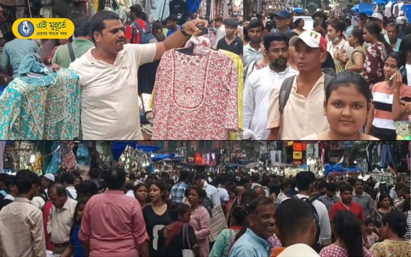 বৃষ্টি উধাও হতেই ধর্মতলায় জমে উঠেছে পুজোর কেনাকাটার বাজার