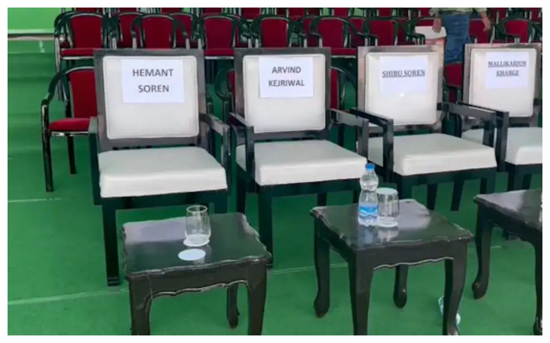 কেজরি- হেমন্তের নামে মঞ্চে খালি চেয়ার রাখল ইন্ডিয়া জোট