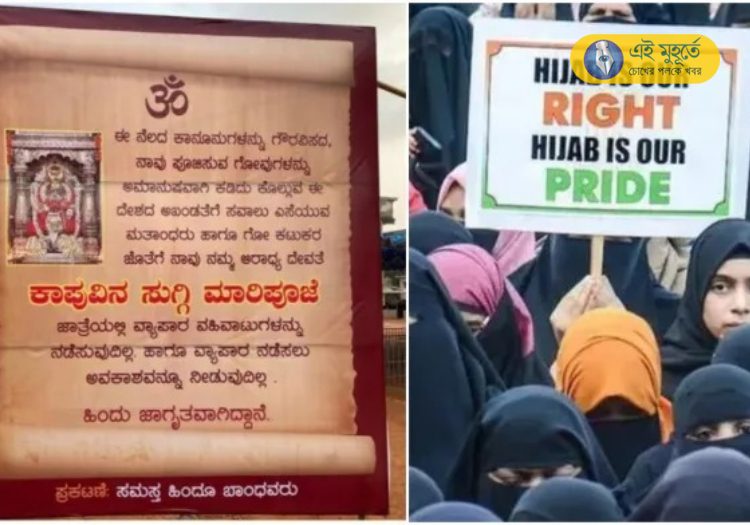 নিজস্ব প্রতিনিধিঃ এই মুহূর্তে কর্ণাটকের হিজাব বিতর্কের জেরে কার্যত উত্তাল জাতীয় রাজনীতি। দক্ষিণের এই রাজ্যে স্কুল, কলেজ কিংবা যে কোনও শিক্ষা প্রতিষ্ঠানে পড়ুয়াদের হিজাব পরার ওপর নিষেধাজ্ঞা জারি করেছে কর্ণাটক হাইকোর্ট। ইতিমধ্যেই এই বিষয়টিকে কেন্দ্র করে দেশজুড়ে উঠেছে বিতর্কের ঝড়। আর সেই বিতর্কের মাঝেই এবার কর্ণাটকের বেশ কিছু মন্দিরের বাইরে পোস্টার পড়ল যে মন্দিরের মেলায় অংশ নিতে কিংবা দোকান দিতে পারবেন না কোনও মুসলিম। ইতিমধ্যেই এই পোস্টারকে কেন্দ্র করের নতুন করে মাথাচাড়া দিয়েছে বিতর্ক। কেন বারবার এইভাবে সাম্প্রদায়িকতাকে উস্কানি দেওয়া হচ্ছে সেই নিয়ে উঠছে প্রশ্ন।