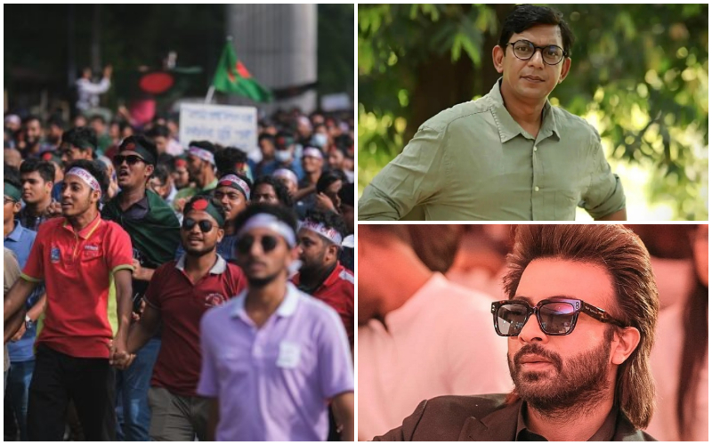 তবে ইতিমধ্যে ঢাকা বিশ্ববিদ্যালয়কে অনির্দিষ্টকালের জন্যে বন্ধ করে দিয়েছে বিশ্ববিদ্যালয়ের মঞ্জুরি কমিশন। এবং ছাত্র-ছাত্রীদের হোস্টেল খালি করার নির্দেশ দেওয়া হয়েছে। এবার শিক্ষার্থীদের প্রতিবাদে পা মিলিয়ে বিভিন্নভাবে প্রতিবাদ করছেন বাংলাদেশের ফিল্ম ইন্ডাস্ট্রিরও একাধিক তারকা। ইতিমধ্যেই অভিনেত্রী পূজা চেরী থেকে শুরু করে শবনম বুবলী, অপু বিশ্বাস, ফারুকী-সহ একাধিক তারকা সংস্কার বিরোধী আন্দোলনে মুখ খুলেছেন। এবার ফেসবুকে বর্তমান পরিস্থিতি নিয়ে ফেসবুকে কালো ব্যানারে পোস্ট দিলেন ঢালিউড সুপারস্টার শাকিব খান এবং চঞ্চল চৌধুরী। শাকিব খান ফেসবুকে লিখলেন, ‘আমার প্রাণের বাংলাদেশ এভাবে রক্তাক্ত হতে পারে না। কারও মা-বাবার বুক এভাবে খালি হতে পারে না।’ এরপর শিক্ষার্থীদের অভিভাবক প্রসঙ্গে অভিনেতা বলেন, ‘আপনারা যারা অভিভাবক পর্যায়ে আছেন, তাঁদের কাছে অনুরোধ রইল, এক্ষুনি আন্দোলনরত শিক্ষার্থীদের সঙ্গে কথা বলে এই সংকটের যৌক্তিক সমাধান বের করুন। সব ধরনের সংঘাতের সমাপ্তি চাই।’ অন্যদিকে দেশে ফিরেই সংস্কার বিরোধী আন্দোলন দেখে হতবাক হয়ে গিয়েছেন জনপ্রিয় অভিনেতা চঞ্চল চৌধুরী। আর দেশে ফিরেই ফেসবুকে শিক্ষার্থীদের সঙ্গে প্রতিবাদে সামিল হলেন তিনি। কারণ এতদিন পেশাগত কাজে দেশের বাইরে ছিলেন চঞ্চল চৌধুরী।