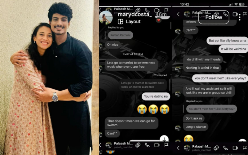 সমাজ মাধ্যমে পলাশের একাধিক চ্যাট ভাইরাল হয়েছে। স্মৃতির বান্ধবী থানে নিবাসী মেরি ডি কোস্টা নামে এক মহিলার সঙ্গে ওই চ্যাট করেছিলেন পলাশ, এমনটাই জানা যাচ্ছে । আর তাতেই শুরু হয়েছে হইচই। থানের বাসিন্দা মেরি একজন কোরিওগ্রাফার। শোনা যাচ্ছে তাঁকেই নাকি আকারে ইঙ্গিতে নানারকম প্রস্তাব দিচ্ছিলেন পলাশ। এমনকি একথাও জানিয়েছিলেন স্মৃতির সঙ্গে সম্পর্ক থাকাটা তার জন্য কষ্টকর হয়ে উঠছে। তিন-চার মাসে মাত্র ১ বার দেখা হয় দুজনের। স্মৃতিকে ভালবাসেন কিনা তা জিজ্ঞাসা করেছিলেন ডিকোস্টা, সেই প্রশ্নের উত্তরও সুকৌশলে এড়িয়ে গিয়েছেন পলাশ।
