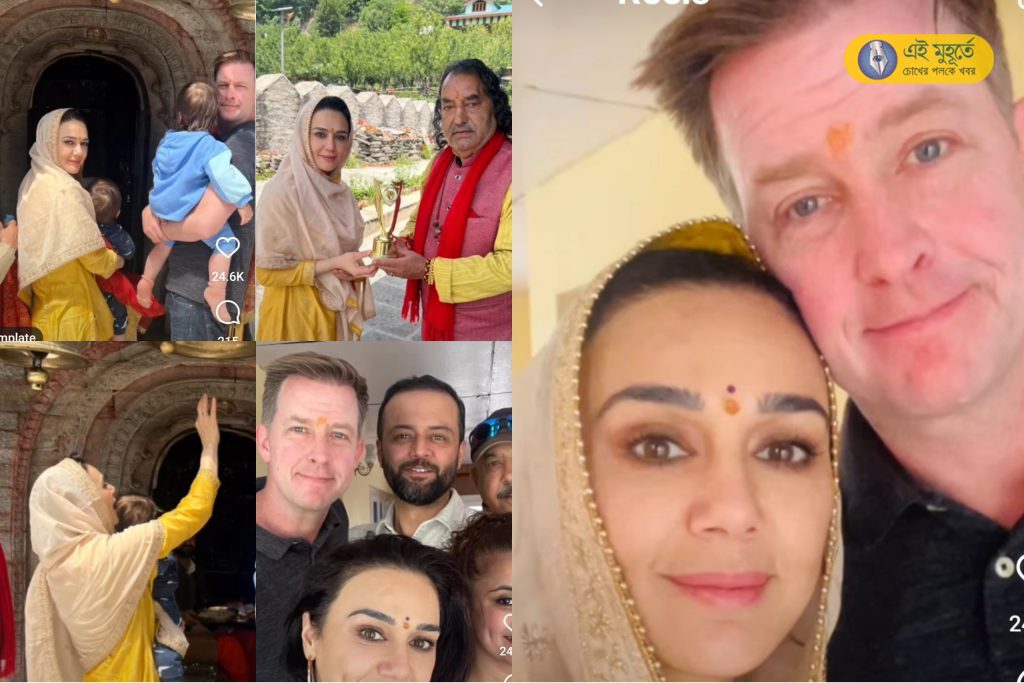 বিয়ের পর বিদেশই পাকাপাকি ঠিকানা। যাই হোক, বর্তমানে তিনি সিমলা রয়েছেন। সম্প্রতি সেখানে পরিবারের সঙ্গে একটি মন্দির দর্শনে গিয়েছিলেন। সেখান থেকেই একগুচ্ছ ছবি এবং ভিডিও এদিন নিজের ইনস্টাগ্রামে শেয়ার করলেন প্রীতি। আসলে স্বামী জিন গুডেনাফ, সন্তান জেহ এবং গিয়াকে নিয়ে সিমলার হাতেশ্বরী মাতার মন্দিরে গিয়েছিলেন প্রীতি। বর্তমানে তারকাদের মন্দিরে যাওয়ার ট্রেন্ডিং অব্যাহত। মন্দির দর্শনের জন্য প্রীতি এদিন সাদামাটা হিন্দু লুক তৈরি করেছিলেন। তিনি একটি হলুদ স্যুট পরেছিলেন এবং সোনালী বর্ণের দোপাট্টা দিয়ে মাথা ঢেকেছিলেন। জিনের পরনে কালো প্যান্টের সঙ্গে কালো শার্ট ছিল। এবং তাঁরা দুই সন্তানকে কোলে করে মন্দিরের ভিতরে প্রবেশ করেছিলেন এবং আচার-অনুষ্ঠানে যোগ দিয়েছিলেন।