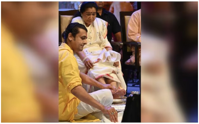 গোলাপ জল দিয়ে পা ধুয়ে আশা ভোঁসলেকে  সন্মান সোনু নিগমের