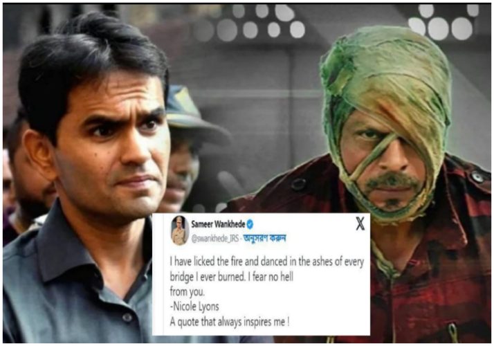 টুইটারে একটি গোপন পোস্ট শেয়ার করে লিখলেন, জওয়ানের বাপ-বেটা সংলাপটি অপ্রয়োজনীয় বিতর্ক তৈরি করছে। তাঁর রহস্যময় টুইটে নিকোল লিয়ন্সের পংক্তি উল্লেখ করে, “আমি আগুন চেটেছি এবং আমি যে সব সেতুতে পুড়েছি তার ছাইতে নাচতে পেরেছি। আমি তাই তোমার দেখানো নরকের ভয় করি না।” নেটপাড়ার একাংশের দাবি, শাহরুখকে পাল্টা বার্তা দিতেই এই পোস্টটি করেছেন সমীর। আবার কেউ কেউ এই পোস্টের তলায় লেখেন, ‘আপনার জন্যে বেল্ট ট্রিটমেন্ট অপেক্ষা করছে।’ আবার কেউ বলেছেন, ‘এই আগুনের নাম শাহরুখ খান।’ আগামী ৭ সেপ্টেম্বর বিশ্বজুড়ে মুক্তি পাচ্ছে জওয়ান। আপাতত বক্সঅফিসে আবারও ঝড় তোলার লক্ষে অভিনেতা।