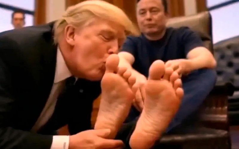 কী কাণ্ড রে বাবা! মাস্কের পায়ের আঙুলে চুমু খাচ্ছেন ট্রাম্প