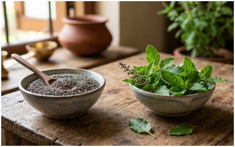 গরমে শরীর ঠান্ডা রাখতে চিয়া না তুলসী? জানুন কোনটি বেশি উপকারী!