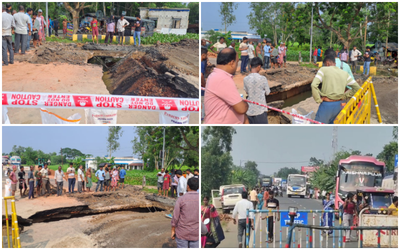 জাতীয় সড়কে ভেঙে পড়ল ব্রিজ,দিঘাগামী পর্যটকদের গাড়ি আটকে রয়েছে ,ব্যাপক যানজট