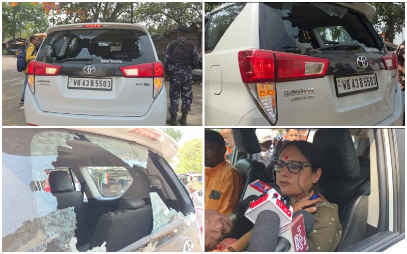 রহমতনগরে ভোটের দিনে হামলা,বিজেপি প্রার্থী অগ্নিমিত্রা পালের গাড়ি ভাঙচুর