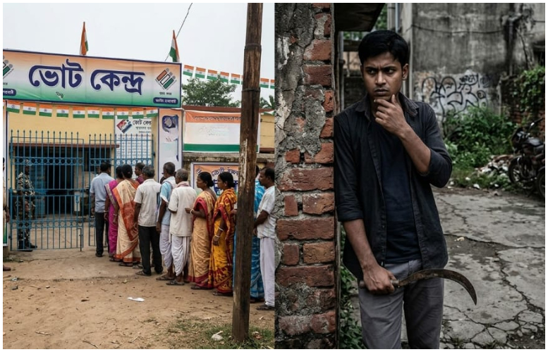 বিজেপিকে ভোট দিতে হবে, অস্ত্র হাতে ভোটারদের হুমকি যুবকের
