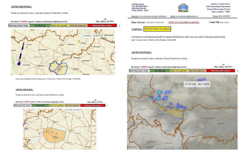 নিজস্ব প্রতিনিধি: পুরুলিয়া, বাঁকুড়া ,হুগলি,পূর্ব বর্ধমান ও আলিপুরদুয়ার জেলায় ধেয়ে আসছে ঝড়-বৃষ্টি। আলিপুর আবহাওয়া দফতরের পক্ষ থেকে সতর্কবার্তা জারি করা হয়েছে। বলা হয়েছে এই জেলাগুলিতে ৩০ থেকে ৪০ কিলোমিটার বেগে প্রতি ঘন্টায় ঝড়ো হওয়া কালবৈশাখী বইতে পারে। এর পাশাপাশি বজ্রবিদ্যুৎ সহ বৃষ্টিপাতের সম্ভাবনা রয়েছে। তাই সাধারণ মানুষজন যেন নিরাপদ স্থানে ঝড়-বৃষ্টি শুরু হলে আশ্রয় নেয়।একাধিক জেলায় জারি করা হয়েছে হলুদ ও কমলা সতর্কতা। চৈত্রের শুরুতেই কালবৈশাখী ও বজ্রবিদ্যুৎ সহ বৃষ্টি পূর্বাভাস আলিপুর আবহাওয়া দফতরের।আবহাওয়া দফতরের পক্ষ থেকে রবিবার বিকেলে সাংবাদিকদের মুখোমুখি হয়ে পূর্বাভাস দিয়ে জানানো হয়েছে ,কলকাতায় আগামী পাঁচ দিন বৃষ্টির কোনো সম্ভাবনা নেই ।
