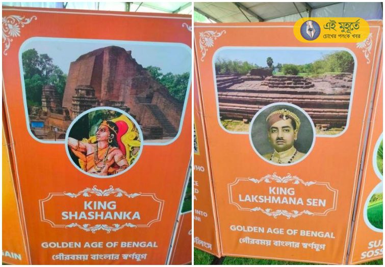 কোলাঘাটের প্রদর্শনীতে যে ২টি ছবি নিয়ে বিতর্ক দানা বেঁধেছে তার মধ্যে একটি ছবিকে রাজা শশাঙ্ক(Raja Shashangka) বলে তুলে ধরা হয়েছে। সেই ছবির পিছনে আবার তুলে ধরা হয়েছে নালন্দা বিশ্ববিদ্যালয়কে। কিন্তু প্রশ্ন উঠেছে, গোটা দেশে আজ পর্যন্ত কেউ রাজা শশাঙ্কের ছবি দেওয়া না কোনও মুদ্রা পাওয়া গিয়েছে, না কোনও লিপি পাওয়া গিয়েছে। বিজেপি রাজা শশাঙ্কের ছবি কোথা থেকে পেল? নাকি একটা কল্পিত ছবি সেখানে হাজির করে দিয়েছে তাঁরা? শশাঙ্ক ছিলেন বাংলার পাল যুগেরও আগের সপ্তম শতাব্দীর রাজা। সেই সময় ক্যামেরা কোথায় যে তাঁর ছবি তোলা হয়ে থাকবে। আজ পর্যন্ত সারা দেশে কোথাও রাজা শশাঙ্কের কোনও ছবি আবিষ্কৃত হয়নি। অথচ বিজেপি একটি পুরুষের ছবিকে রাজা শশাঙ্কের ছবি বলে চালিয়ে দিয়েছে।