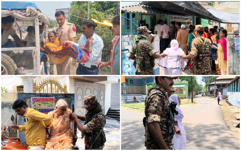 ঘাটাল ও চন্দ্রকোণায় জওয়ান এবং বিএলও’র কোলে করে ভোট দিতে এলেন প্রবীণরা
