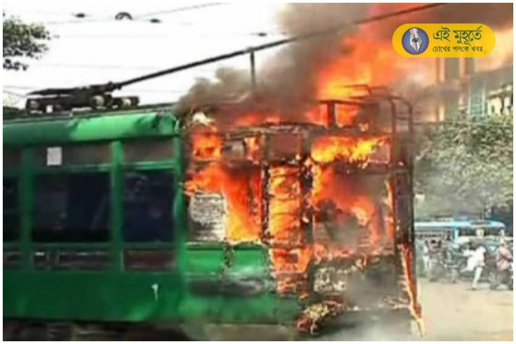 কলকাতার রাস্তায় দাউ দাউ করে জ্বলে উঠল ট্রাম