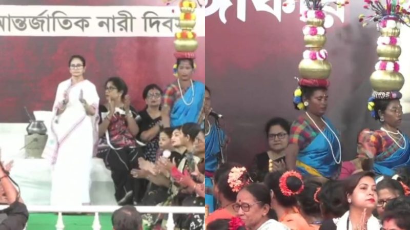 ধামসা বাজিয়ে নাচের তালে আদিবাসী তরুণীদের সঙ্গে পা মেলালেন মমতা