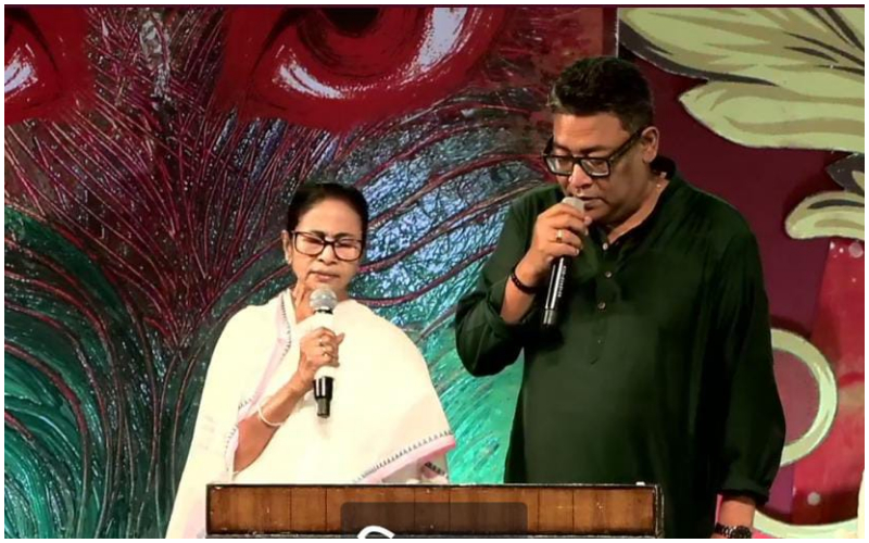 নজরুল মঞ্চে ইন্দ্রনীল সেনের সঙ্গে গলা মিলিয়ে মুখ্যমন্ত্রী গাইলেন জাগো দুর্গা…