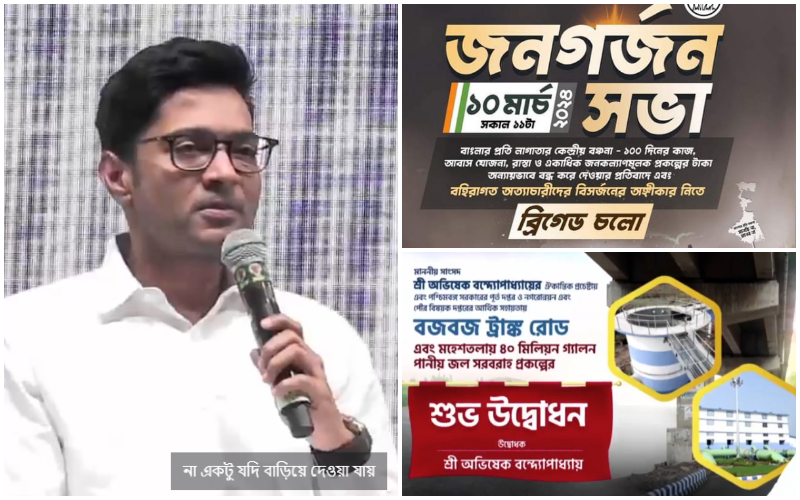 এদিন অভিষেক জানিয়েছেন, ‘আমরা কথা দিলে সে কথা রাখি। মমতা বন্দ্যোপাধ্যায় যে কথা দেন, সেই কথা তিনি রাখেন। তৃণমূল কংগ্রেস যে কথা দেয় সেই কথা রাখা হয়। আমিও কথা দিয়ে কথা রাখি। কিন্তু বিজেপি কী কথা রাখে? কেন্দ্রের সরকার কী কথা রাখে? ১০০ দিনের কাজের টাকা গায়ের জোরে আটকে রেখেছে। আগামী দিনে দেশের মানুষ সেই গাজোয়ারি বন্ধ করে দেবেন। আগামী কাল থেকে জব কার্ড হোল্ডারদের ১০০ দিনের কাজের বকেয়া টাকা দেবে রাজ্য। ৫৯ লক্ষ শ্রমিকদের টাকা দেওয়া হবে। তার প্রসেসও শুরু হ্যে গিয়েছে। ১ মার্চের মধ্যে সবাই টাকা পেয়ে যাবেন।’ উল্লেখ্য বাংলার প্রতি কেন্দ্রের বঞ্চনার দাবিতেই আগামী ১০ মার্চ কলকাতার ব্রিগেডে ‘জনগর্জন সভা’র ডাক দিয়েছে তৃণমূল। তার আগেই এদিন মহেশতলার সভা থেকেই সেই ব্রিগেড প্রস্তুতির সুর বেঁধে দিলেন অভিষেক। ১০০ দিনের কাজ, আবাস যোজনা, রাস্তা ও একাধিক জনকল্যাণমূলক প্রকল্পের টাকা দীর্ঘদিন ধরে বন্ধ করে রেখেছে মোদি সরকার, এমনটাই অভিযোগ রাজ্যের শাসকদলের। তাই কেন্দ্রীয় বঞ্চনার প্রতিবাদে এই সভার ডাক দিয়েছে তৃণমূল কংগ্রেস।