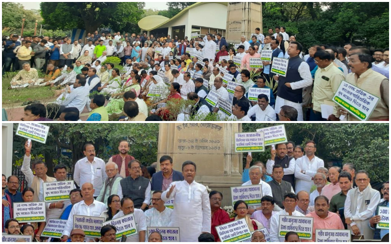 বকেয়া টাকা চেয়ে তৃণমূলের ধর্না আম্বেদকর মূর্তির নিচে