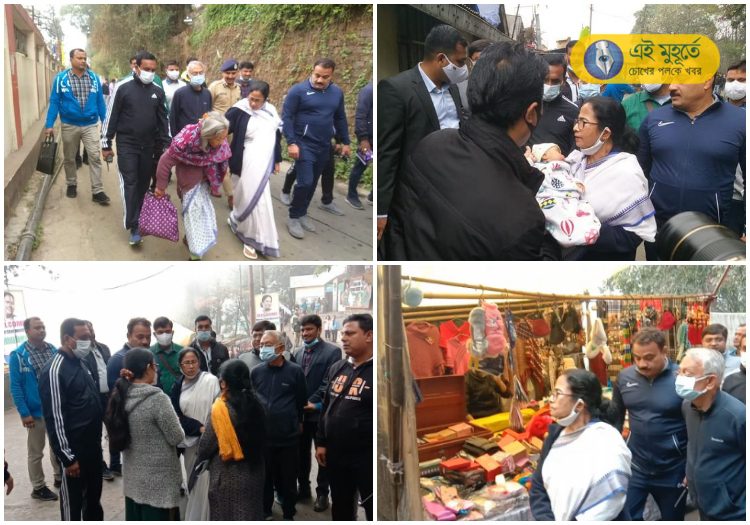 এদিন সকালে পায়ে হেঁটে মুখ্যমন্ত্রী ম্যাল ঘোরার পাশাপাশি ঘুরে দেখেন সিংমারি এলাকাও। সেই সিংমারিতেই রাস্তায় এক বৃদ্ধা মহিলা মুখ্যমন্ত্রীকে ডেকে কথা বলেন। জানান তাঁর সমস্যা, অসুস্থতার কথা। এরপরই জেলাশাসককে তড়িঘড়ি বৃদ্ধার চিকিৎসার নির্দেশ দেন মমতা বন্দ্যোপাধ্যায়। বিষ্ণু তামাং নামে ওই বৃদ্ধাকে কোমরে বেল্ট পরার পরামর্শও দেন মুখ্যমন্ত্রী। মমতা বন্দ্যোপাধ্যায় তাঁর সঙ্গে থাকা কর্মীদের নির্দেশ দেন ওই বৃদ্ধার বাড়িতে কোমরের বেল্ট পৌঁছে দিতে। একইসঙ্গে এদিন ম্যালেই মুখ্যমন্ত্রী এক শিশুকে কোলে তুলে নেন। অগ্নি নামে ওই শিশুকে আশীর্বাদ করেন মমতা। পাশাপাশি এদিন ম্যালে বিশ্ব বাংলা স্টোরেও পৌঁছন মুখ্যমন্ত্রী। সেখানে ঘুরে দেখেন দোকানটি। কর্মীদের ঠিকমতো বেতন হচ্ছে কিনা, বিক্রিবাটা কেমন চলছে তাও খোঁজ নেন মমতা বন্দ্যোপাধ্যায়।