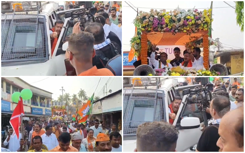 অশোকনগরে নীতিন নবীন সিআরপিএফের গাড়ি চড়ে এলেন শেষ রবিবারের প্রচারে