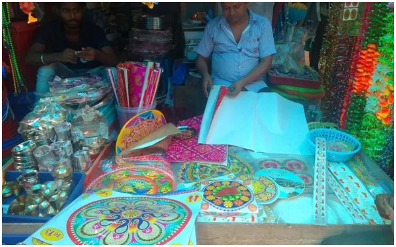 খড়ি মাটির দিন শেষ! রমরমিয়ে বাজারে বিকোচ্ছে প্লাস্টিকের রেডিমেড আলপনা
