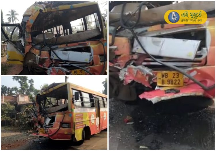 স্কুল বাস ও লরির মুখোমুখি সংঘর্ষ, চালক সহ জখম অন্তত ২০