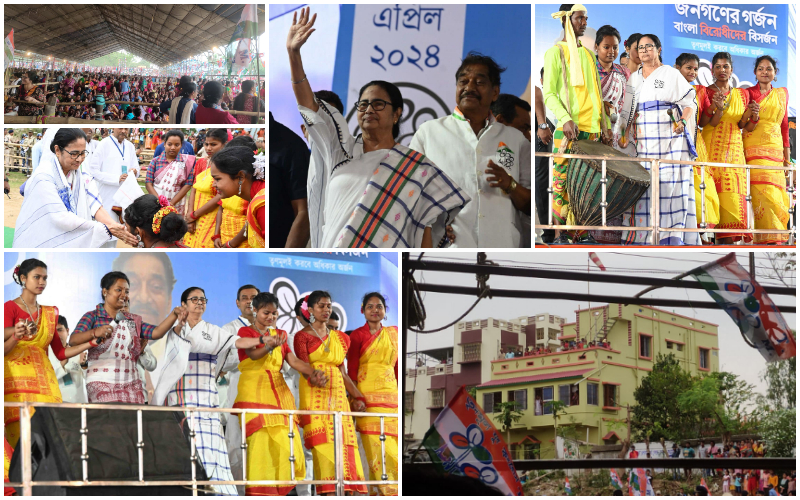 জঙ্গলমহলের ৫টি লোকসভা কেন্দ্রেই একসময় ছিল লালদুর্গ। পুরুলিয়া, বাঁকুড়া, বিষ্ণুপুর, মেদিনীপুর ও ঝাড়গ্রাম এই ৫টি লোকসভা কেন্দ্রে দশকের পর দশক আধিপত্য কায়েম রেখেছিল বামেরা। কিন্তু কালের নিয়মে বামেরা বাংলার ক্ষমতা থেকে সরে যেতেই এই ৫টি লোকসভা কেন্দ্র চলে এসেছিল তৃণমূলের(TMC) দখলে। ২০১৪ সালের লোকসভা নির্বাচনে এই ৫ কেন্দ্রই গিয়েছিল তৃণমূলের দখলে। কিন্তু ঠিক তার ৫ বছর বাদে উনিশের লোকসভা নির্বাচনে এই ৫ কেন্দ্রেই ফুটেছিল পদ্মফুল। কিন্তু এবারে জঙ্গলমহলের বুকে ফের ফিরে এসেছে পুরাতন ছবি। তৃণমূলকে ঘিরে, জোড়াফুলকে ঘিরে, সর্বোপরি মমতা বন্দ্যোপাধ্যায়কে ঘিরে জঙ্গলের জনতার উচ্ছ্বাস। এদিন রায়পুরে দেখা গিয়েছে মমতার সভাস্থল কানায় কানায় পূর্ণ, আশেপাশের বাড়ির ছাদে, পাঁচিলেও উপচে পড়ছে ভিড়। এই ভিড়ই বলে দিচ্ছে, জঙ্গলমহলের জনতা শুধু প্রহর গুণছে পরিবর্তনের পক্ষে তাঁদের মত তুলে ধরতে। আর সেটাই উদ্বেগ বাড়িয়েছে বিজেপির(BJP)। উদ্বেগ বাড়িয়েছে মমতার বক্তব্যও। এদিনের সভা থেকে মমতা সরব হয়েছে সারি আর সারনা ধর্মের স্বীকৃতি নিয়ে, সরব হয়েছেন CAA নিয়ে, সরব হয়েছেন, অভিন্ন দেওয়ানি বিধি নিয়েও।
