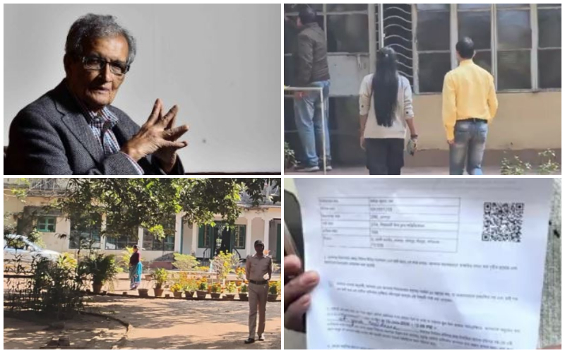 চলতি মাসের ৭ তারিখ শান্তিনিকেতনের প্রতীচীতে গিয়ে নোটিশ দিয়ে এসেছিলেন বিএলও। সেখানে বলা হয়েছিল নির্দিষ্ট দিনে শুনানিতে উপস্থিত হতে হবে প্রয়োজনীয় তথ্য ও নথি নিয়ে। এই ঘটনায় খুব প্রকাশ করেছিলেন মুখ্যমন্ত্রী মমতা বন্দ্যোপাধ্যায়। সেই নোটিশ মেনে শুক্রবার অমর্ত্য সেনের শান্তিনিকেতনের বাড়িতে পৌঁছে গিয়েছিলেন ৩ সদস্যের নির্বাচন কমিশনের দল। প্রায় ১৫ মিনিট ধরে সেই বাড়ির সদস্যদের সঙ্গে কথা বলেন তারা। অমর্ত্য সেনের আধার কার্ড পাসপোর্ট, সুরা তোমার অমৃতা সেনের মৃত্যুর শংসাপত্রের ফটোকপি সংগ্রহ করেছেন কমিশনের সদস্যরা। এখানেই বাড়ির সদস্যরা কমিশনের সদস্যদের কাছে জানতে চেয়েছেন, ভারতরত্ন শংসাপত্র টি এস আই আর এর ক্ষেত্রে জরুরী কিনা। যদিও সেই প্রসঙ্গে তাঁরা কোনো মন্তব্য করেনি বলে জানা গিয়েছে।