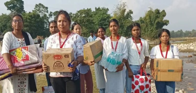 নাগরাকাটায় দুর্গতদের পাশে চা বাগানের মেয়েরা