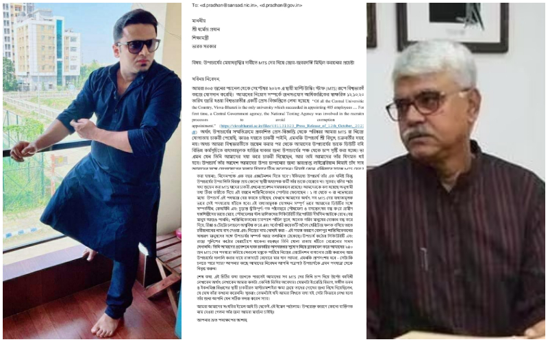 অনুপম হজরার হিসাবমতো, দেশের শিক্ষামন্ত্রী ধর্মেন্দ্র প্রধানকে ইমেলে অভিযোগ জানিয়েছেন বিশ্বভারতী বিশ্ববিদ্যালয়ের ৪ শতাধিক Multi-tasking Staff বা MTS। এই MTS-দের বক্তব্য, তাঁদের দিয়ে জোর জবরদস্তি মিছিল করানোর প্রচেষ্টা চলছে। আর কয়েকদিনের মধ্যেই উপাচার্য বিদ্যুৎ চক্রবর্তীর মেয়াদ শেষ হয়ে যাবে। কিন্তু তাঁর দাবি, মেয়াদ বৃদ্ধির জন্য চাপ দিক বিশ্ববিদ্যালয়ের কর্মীরা। মিছিলে নেমে উপাচার্যের মেয়াদ বৃদ্ধির দাবি করা হোক। অন্তত ৪০৫ জন MTSর অভিযোগ এমনটাই। শুধু তাইই নয়। উপাচার্য নাকি বলেছেন ‘মিছিল তোমাদের করতেই হবে’! বিশ্বভারতীর কাজে যোগ দেওয়া ৪০৫ জন MTS’র আরও অভিযোগ, নির্ধারিত কাজের বাইরে উপাচার্যের চাপেই তাঁদের নানা বাড়তি কাজ করতে হয়। অভিযোগপত্রে উপাচার্যের বিরুদ্ধে তাঁরা নিজেদের ক্ষোভও উগরে দিয়েছেন। আর তাঁদের সেই অভিযোগপত্রের সবটাই সোশাল মিডিয়ায় পোস্ট করেছেন অনুপম হাজরা। সেইসঙ্গে তাঁর কটাক্ষ, ‘কবিগুরু বা নরেন্দ্র মোদি বা বিশ্বভারতীর প্রতি কোনও ভালোবাসা নেই…কিন্তু যেটা আছে, সেটা হলো উপাচার্যের চেয়ারটার প্রতি আনলিমিটেড প্রেম এবং আকর্ষণ !!!’