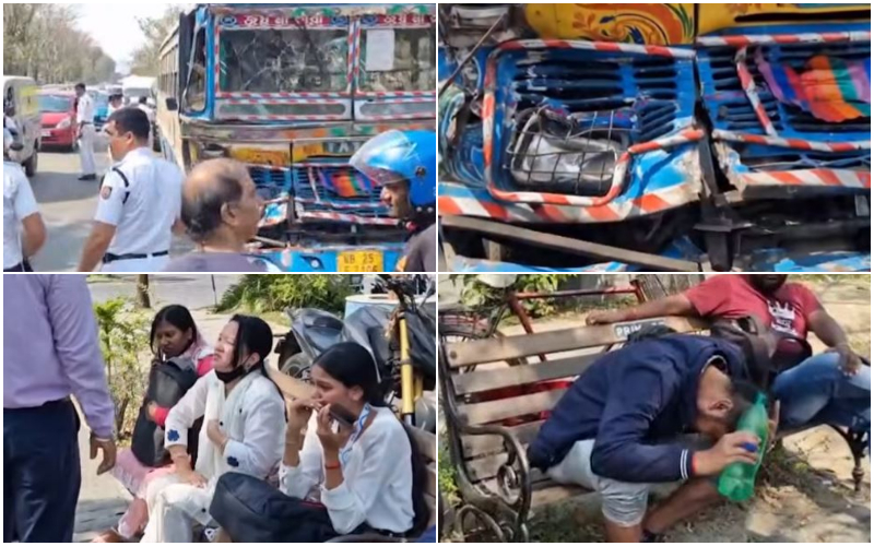 বিশ্ববাংলা সরণীতে রেষারেষির জেরে বাস দুর্ঘটনা, আহত বেশ কয়েকজন