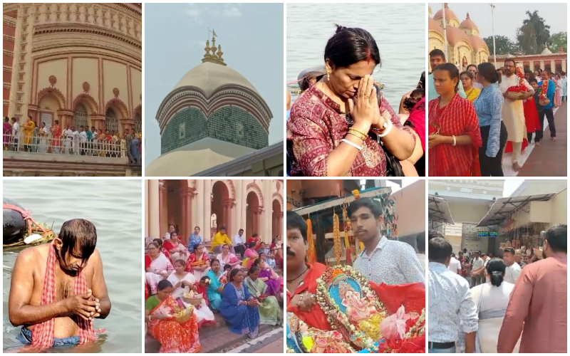 নববর্ষের সকাল থেকে দক্ষিণেশ্বর ও কালীঘাট মন্দিরে ভক্তদের নজরকাড়া ভিড়