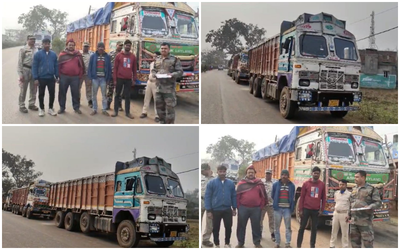 জাতীয় সড়কে অভিযান,ভিন রাজ্য থেকে অবৈধ বালি পাচার চক্র ধরল ঝাড়গ্রাম পুলিশ, আটক ৫টি ট্রাক