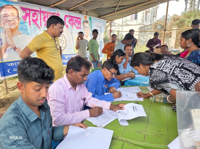 যুবসাথী শিবিরে ফর্ম পূরণে সহায়কের ভূমিকায় মন্ত্রী স্বপন দেবনাথ