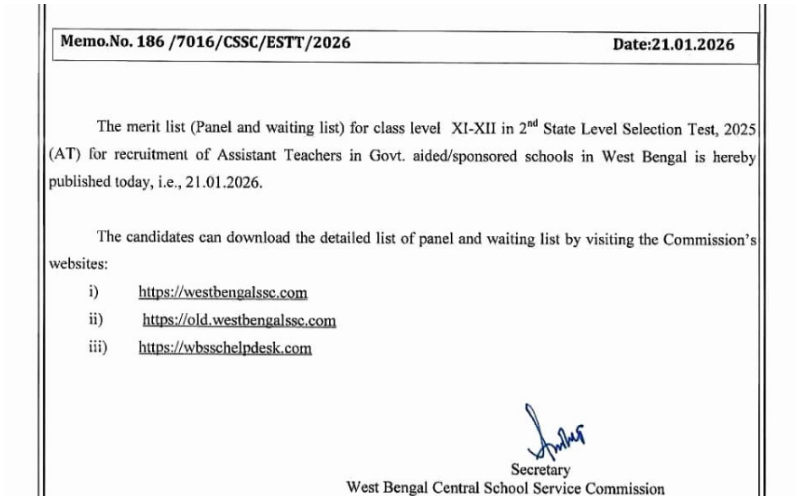 একাদশ – দ্বাদশ শ্রেণির শিক্ষক নিয়োগের চূড়ান্ত তালিকা প্রকাশ করল এসএসসি
