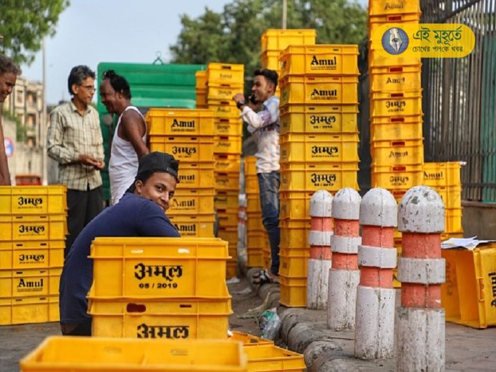 Amul milk is being distributed in Old Delhi, India (Photo by Nasir Kachroo/NurPhoto via Getty Images)